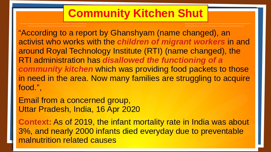 "the ... administration has disallowed the functioning of a community kitchen"