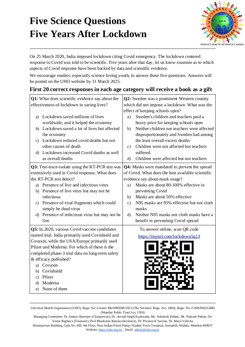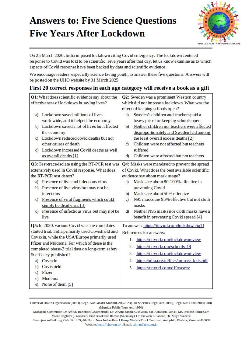 A statement/letter to relevant authorities in India, based on the Great Barrington Declaration